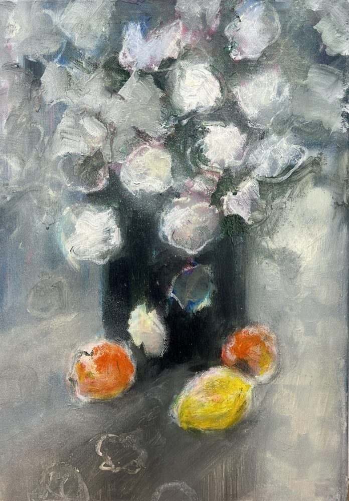 The moment the petal releases and falls gently to the floor is the moment I capture in these floral paintings.